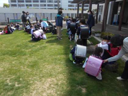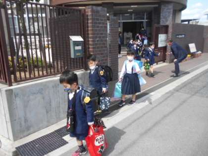 入学当初1年生は、ABCDの4つのコースに分かれて下校しています。教職員がしばらくの間、家の近くまで付き添っていきます。来週中には子どもたちだけで下校するようになります。