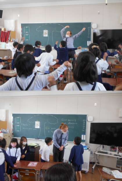 3年生から外国語の学習が始まります。今日は、新しいC-NETの先生と英語の学習をしました。キャメロン先生の紹介の後、「Hello! nice to meet you.」「Good morning.」など英語であいさつの練習をしました。