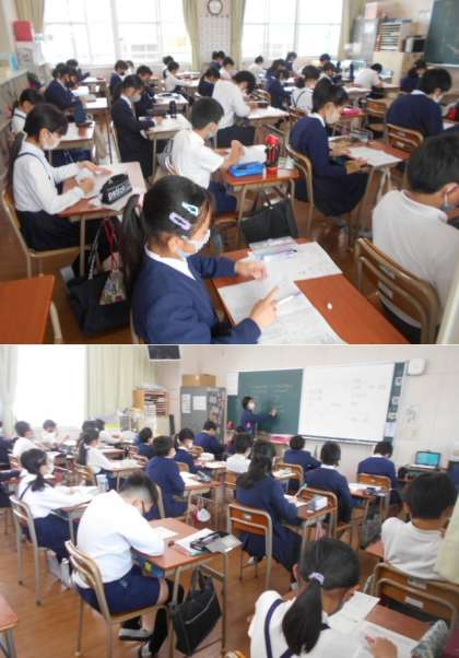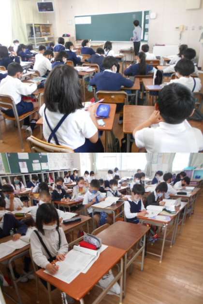 4時間目(11:45〜12:30)は、朝の家庭学習の時間に、プリントを等で取り組んだことを確かめ、学習の振り返りを行います。