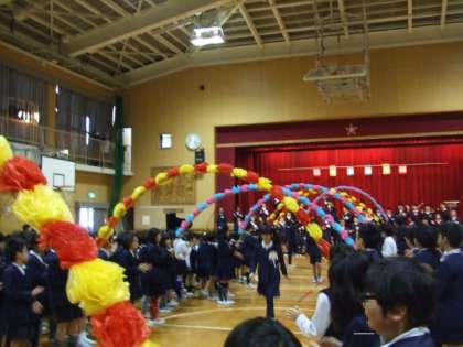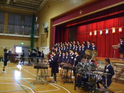 1年間ふれあい班でお世話になった班長に、みんなの感謝の言葉が書かれたメッセージカードをわたしました。6年生からは、気持ちのこもった歌や合奏のお返しがありました。心あたたまる「卒業を祝う会」になりました。