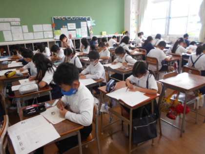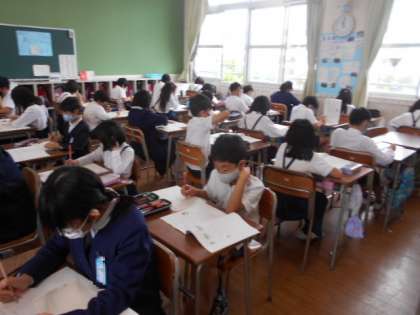 5年生は、今年度から実施されることになった「すくすくウォッチ」に取り組んでいます。教科の問題・教科横断型の問題やアンケートに挑戦していました。