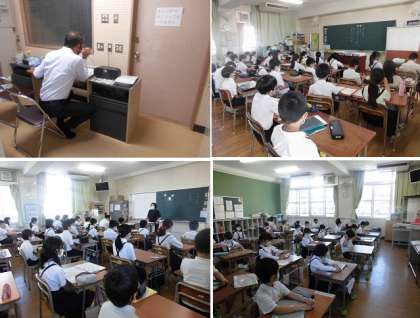 北原白秋の「ひとつのことば」の紹介をしながら、「ことば」は、人を楽しくしたりうれしくしたりしますが、逆に人を傷つけることもあります。一人一人がよく考え「ことば」をていねいに使いましょう。というお話がありました。教室で聞いている人たちは、静かにお話を聞いて受け止めていたように感じました。