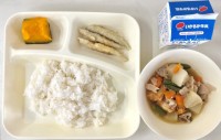 かぼちゃのクリームシチューは、かぼちゃや牛乳、クリームの甘みがありおいしくできました。ミックス海そうのサラダは少し酸味があり、さっぱりと仕上がりました。年1回のクインシーメロンは程よい甘さがありました。