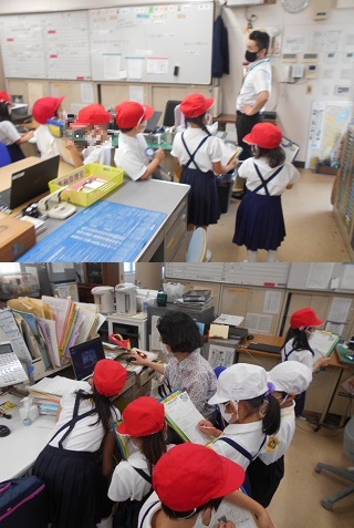 初めて入る部屋も多く、担当の職員がいる部屋では、質問をして探検ボードのプリントにメモしました。みんな意欲的に活動することができていました。
