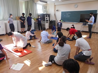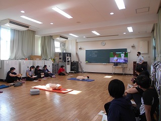 緊急事態宣言が解除される予定の、6月21日(月)から水泳学習が始まります。その前に、水難事故等に備えて救命救急講習会を実施しました。