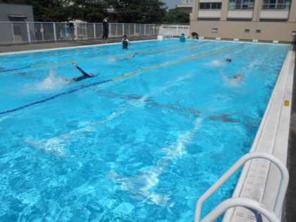 午後からは気温も高くなりました。どの学年も水慣れを十分にしてから学習を始めていました。5年生は元気に水しぶきをあげて25mに挑戦していました。