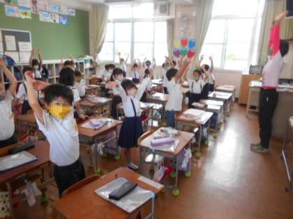 集会委員会による放送での児童集会がありました。今日は「船長さんの命令です。」ゲームでした。「船長さんの命令です。」と言わないとその動作をしてはいけません。最初の問題は間違える人が多かったですが、ゲームに慣れてくるとみんな上手に動作をしていました。特に低学年の人は喜んで活動していました。