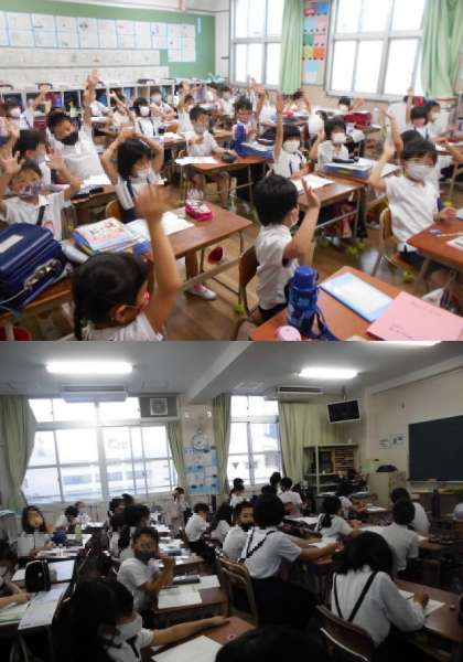 今日の児童集会は、「イントロクイズ」でした。みんなが知っている曲のイントロ部分を聞いて答えます。集会委員会の担当のメンバーは、放送室の前でリハーサルをしていました。流行している曲やアニメの主題歌など楽しい曲が流れました。