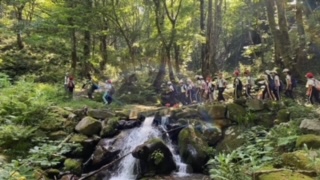 木陰の中、せせらぎとセミ時雨にかこまれながらゴールに到着しました。