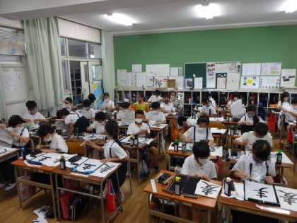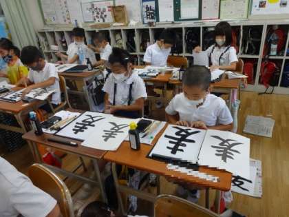 2学期初めての書写は「麦」です。久しぶりの毛筆でしたが、みんなとても集中して取り組んでいました。