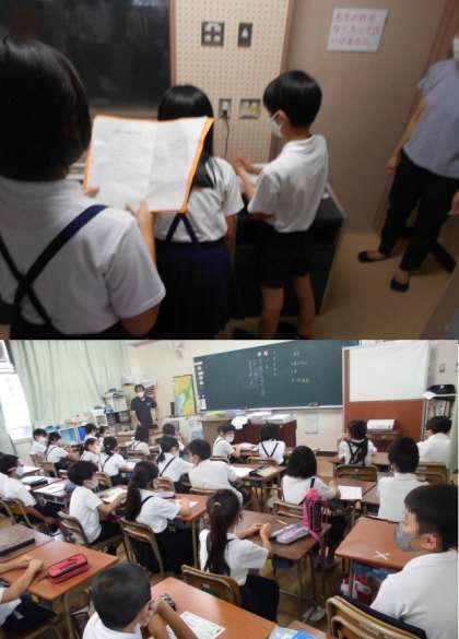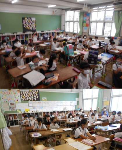 2学期最初の児童集会がありました。今日は「かくれた文字当てゲーム」という初めてのゲームでした。
