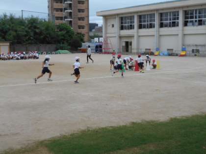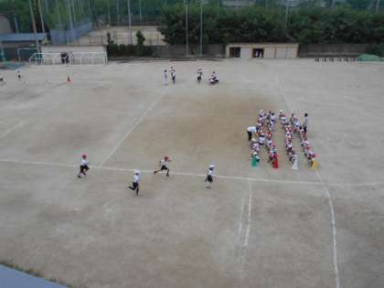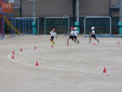 3年生もスポーツデイの個人走の練習をしていました。3年生になるとコーナーの走り方もスピードに乗って上手に出来ていました。