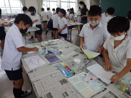 絵の具の様々な技法にチャレンジしました。11月の作品展に向けて少しずつ準備を進めています。