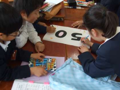 「今年は、どんなお友だちと一緒かな」と楽しみにしていた「ふれあいタイム」が始まりました。まず、6年生のリーダーが、1年生を教室の前まで迎えにいきました。新しいリーダーは、どの子もやさしくふれあい班の教室に連れていっていました。「今年は、自分たちがまとめていくんだ」というリーダーの自覚が感じられました。自己紹介の後、班の名前を決めて、自分たちの旗を作りました。