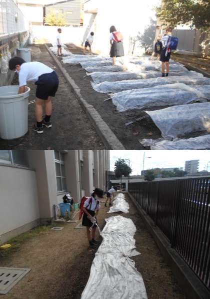 先週の木曜日に植えた種がもう元気に発芽しています。さすが高学年で、忘れずに頑張っています。