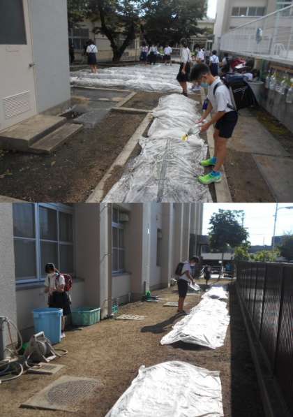 緊急事態宣言の期間は、5年・6年で「田辺大根」のお世話をします。月・水・金は6年生、火・木は5年生が水やりなどの当番です。