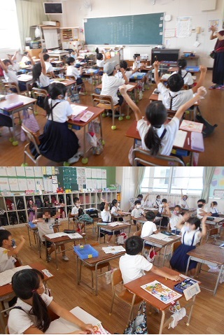 例えば、「〇〇先生の好きな動物は、1.パンダ、2.ウサギ、3.オランウータン。さあ何番でしょう?」正解と思った番号を指で出して答えていました。正解したら大声を出さずに喜びを表現していました。思ったよりも正解者が多かったです。みんなよく先生のこと知っていますね。