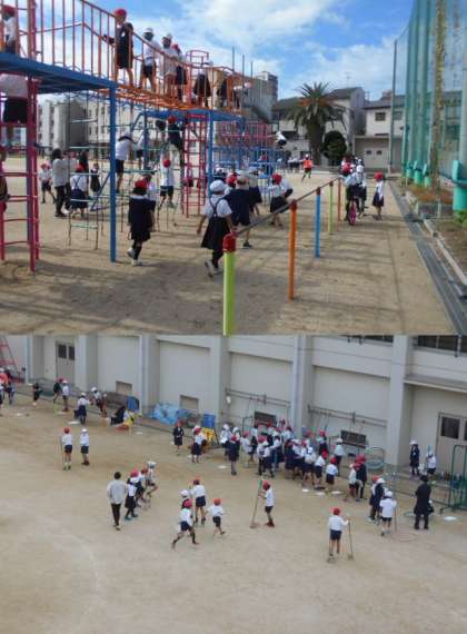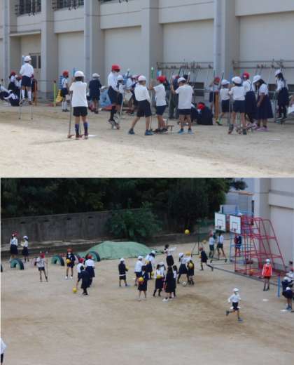 今週は奇数学年が15分休憩に活動しましす。1年生が遊具、3年生が鉄棒・竹馬、5年生がボール・一輪車をします。