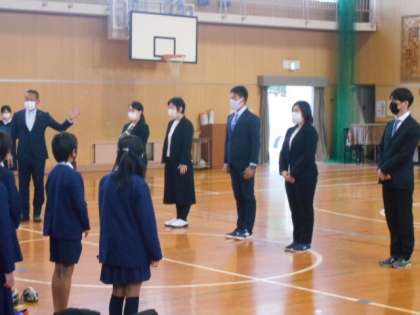 出発式では、付き添いの職員の紹介と、代表の児童のあいさつがありました。