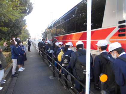 バスへ乗って出発します。今まで学習してきたことをもとに、いろいろなことを体験してきてほしいですね。