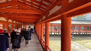 世界遺産厳島神社を見学しました。厳かな雰囲気の中に歴史と伝統を感じとることができました。