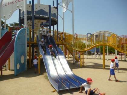 3・4年生は、地下鉄に乗って緑地公園へ春の遠足に行きました。天候にも恵まれていたこともあり、多くの学校が遠足に来ていました。みんな広い公園を思い切り走ったり、大きな遊具で楽しく活動したりすることができました。