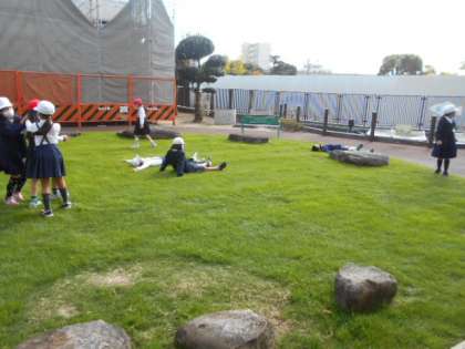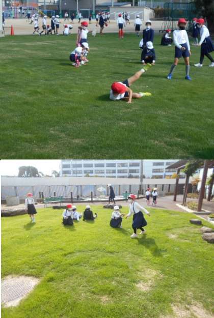 10月9日(土)に芝生広場とナッケ広場に冬芝の種をまく作業をしていただいてから、冬芝が根付くまで1カ月程芝生には入れませんでしたが、今日からフカフカの芝生で遊んだり、休憩したりできることになりました。さっそく走り回ったり、寝転んだりする人がたくさんいました。芝生を手でそっと触っている人もいました。