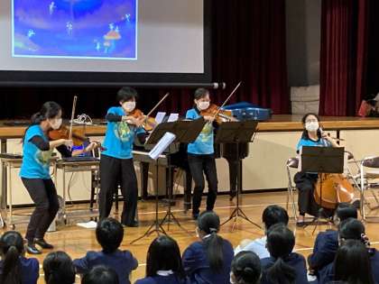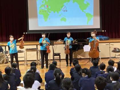 アンサンブル・サビーナの方々にお越しいただき、音楽体感事業を6年生対象に実施しました。