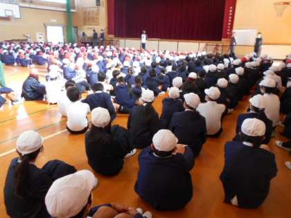しばらくして安全が確認されたのちに体育館に集まりました。