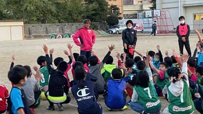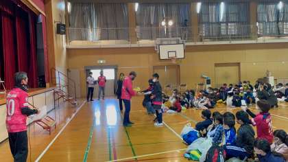 当日はたくさんの児童と保護者が参加しました。トークショーではサッカーの話や夢を追う子供たちへのメッセージを贈っていただき、サッカースクールでは児童だけでなく、先生や保護者も交え試合をしました。