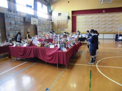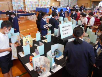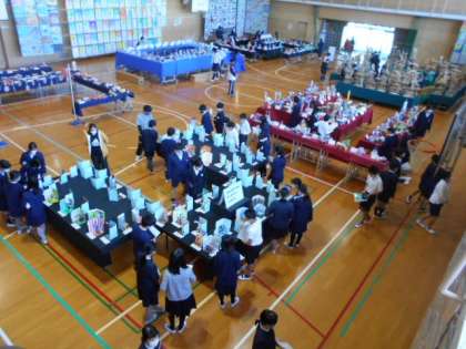 2日目は作品展を高学年が鑑賞する日です。自分の学年はもちろん、低学年の作品も熱心に見ていました。