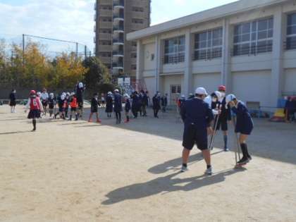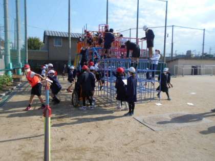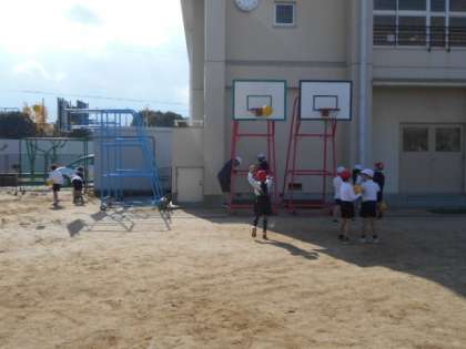 2年生がボール・一輪車、4年生が遊具、6年生が鉄棒・竹馬をします。