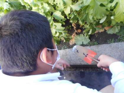 子どもたちは葉を観察して、黄色くなった葉や桜の木の落ち葉も取り除いていました。