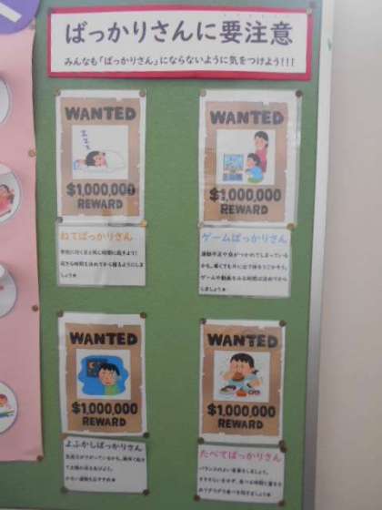 また、冬休みに「 〜 ばっかりやさん」にならないように気をつけることも掲示されています。