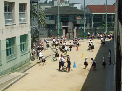 中庭やコンビネーションでも多くの子どもたちが運動をしていました。