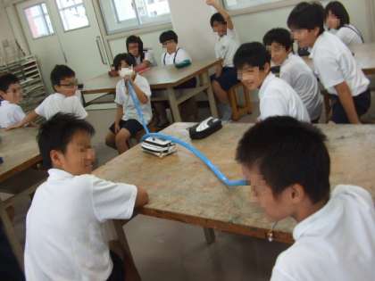 5日シャープ株式会社から出前授業に来ていただきました。「ものづくり」について携帯電話を例にとって、画面を見ながらの説明や分解・組み立ての作業を通して学習をしました。そして、製品ができるまで、「企画「開発」「生産」「販売」といろいろな仕事が、さまざまな所で関わっていることを知り、みんなの力を合わせて、夢を形にしていくものづくりの楽しさを体感しました。子どもたちは、初めての体験に意欲的に取り組み、これからの学習に夢をふくらませていました。