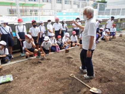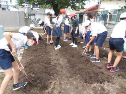 みんないっしょうけんめいに自分の班の畑を耕していました。