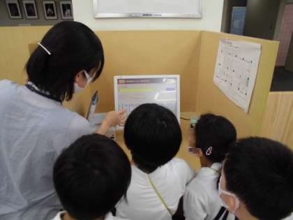 図書館の方からお仕事や図書館のことについてお話を聞いたり、本を探すパソコンの使い方を教わったりと、いろいろなことを学習できました。