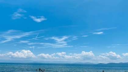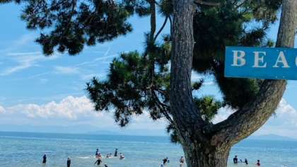 イカダ作りのあとは、冷たいかき氷をいただいで湖水浴を楽しみました。