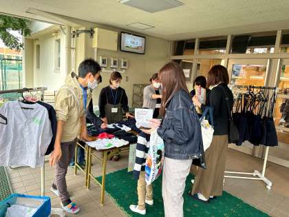 就学前健診の日に合わせて、体育館入り口にて奨励服リユースが行われました。