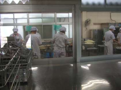 本日9月2日より給食の開始。長池小学校はただの給食開始日ではなく、昭和中学校との親子方式の給食開始日です。大阪市で唯一1校のみの取り組みだけに、朝から取材陣が殺到。給食室はごったがえしました。調理員さんたちも緊張したでしょうね〜。