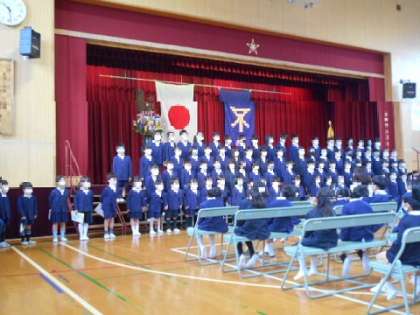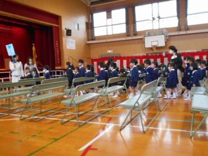 4月7日(金)に入学式が行われました。今年度は、75名の新1年生が入学しました。みんな元気な笑顔で入場し、校長先生やPTA会長のお話もしっかりと聞いていました。