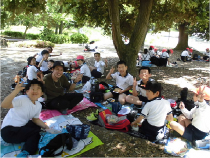 3,4年生で12日に服部緑地へ春の遠足に行きました。たいへん良い天気で、昼間は汗ばむくらいでした。フラワー通りや子どもの楽園では、大きな総合遊具で遊び、自然の中で思いっきり体を動かすことができました。遊んだ後は、みんなで楽しくお弁当、お菓子を食べました。
