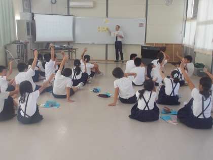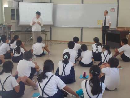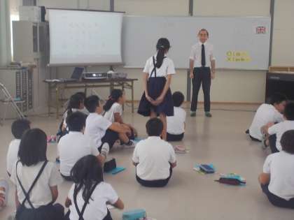 毎週金曜日に5・6年生が外国語の学習をしています。今日から新しいC-NETの先生に来ていただくことになりました。T・Tの形式でクイズやゲームを取り入れて、楽しく外国語を学べるようにしてくださいます。みんなも元気な声で学習に取り組んでいました。