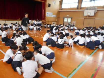 みんなが楽しみにしているナッケカーニバルが、今週の金曜日にあります。今日の児童集会は、班でナッケカーニバルの回り方を相談しました。6年生のリーダーを中心に、できるだけ多くのお店を回るように考えていました。当日が楽しみですね。