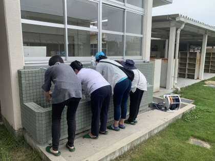 今回の校内清掃では、水泳の授業が始まる為、更衣室の清掃を中心に、体育館や渡り廊下、トイレ、玄関口など普段子どもたちだけでは手の届きにくい箇所を念入りに清掃しました。