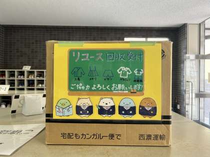 下駄箱の上に回収箱を設置していますので、もう着なくなった奨励服や体操服があれば、ぜひリユースにご協力ください。
