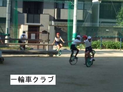 一輪車クラブと陸上クラブと国際交流クラブです。