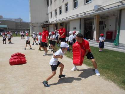 暑い中でしたが、みんなとても楽しくラグビーに触れることができました。