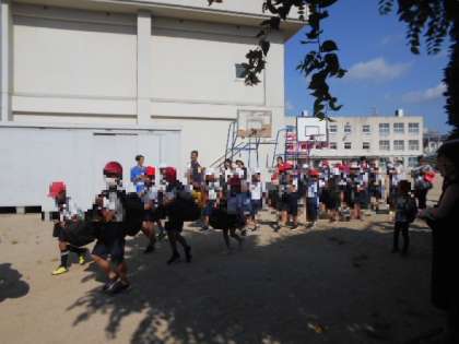 朝から暑い中、児童たちの顔は林間学習への期待でいっぱいでした。